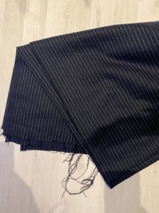 I say all that to say, I am not 100% sure of the composition of this fabric. It is a dark almost navy pinstripe poly wool blend I bought at my local market which is where most of the fabrics in my stash at the moment come from. Nothing is really labeled properly there and so its usally a guess/gamble what you are getting. But i am guessing that this fabric is a poly wool blend for a number of reasons. The weight and the slight itchiness of the fabric suggests wool. It is nice and cosy and a little warm. However, during the sewing process I came close to burning/melting a piece of fabric which makes me think theres some sort of plastic in it. Anyway, it does the job that I need it to do at the moment, which is to make a pair of loose fitting “tailored” trousers. I used about 2.5 meters of fabric and I have quite a bit left over I think I will make a waistcoat to go. I am leaning towards the Veronica waistcoast also from Just Patterns.